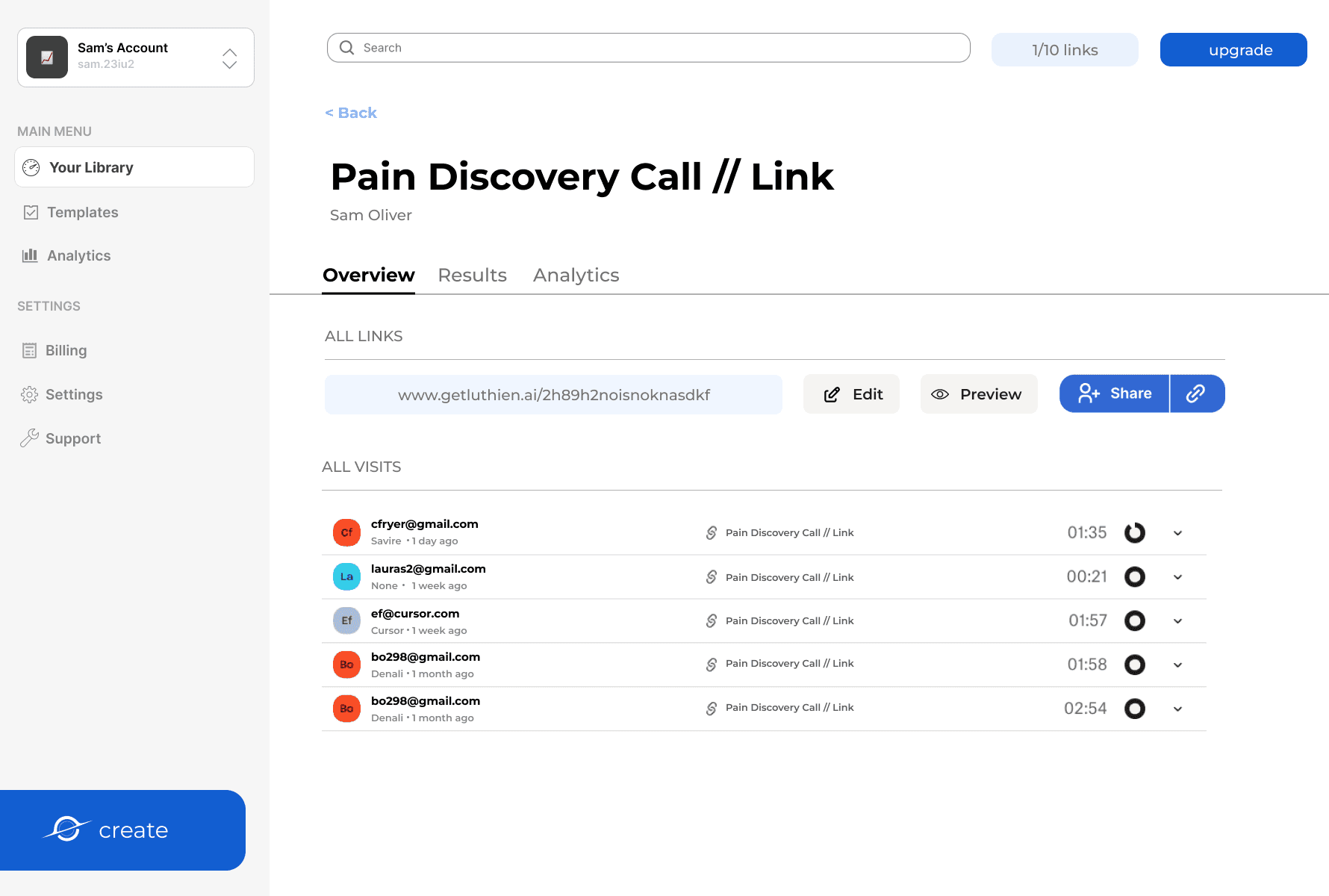 Luthien AI frees you up: less time doing research discovery calls or customer interviews and more time on what you enjoy